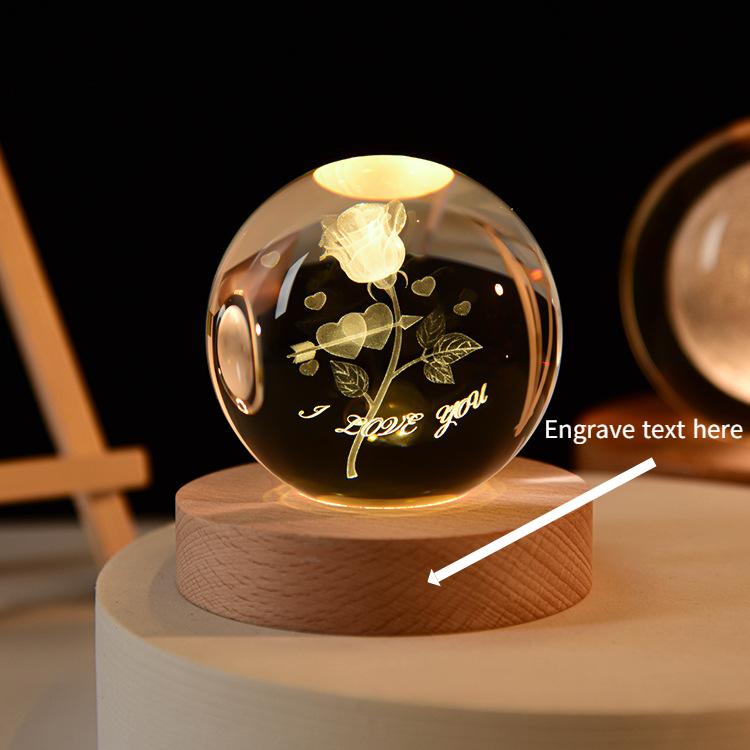 1. 3D Engraving Pattern Inside The Premium Crystal Ball With Your Photo Provided. Engraving Name, Date Phrase, Message, Number, Quote or Joke.